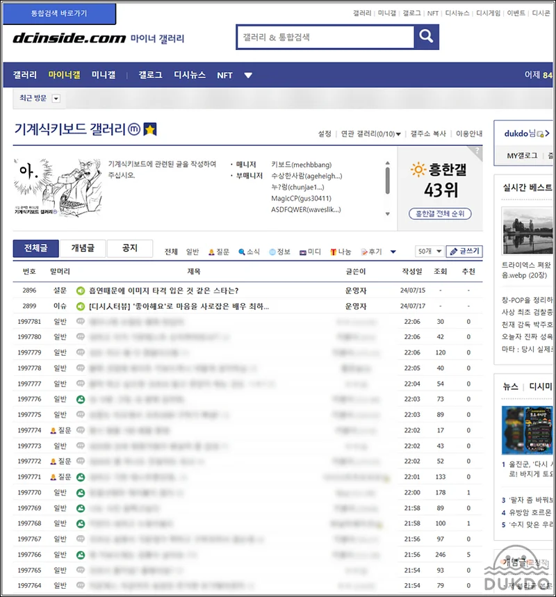 디시인사이드가 아주 오래전에 생긴 사이트다보니 세련미는 떨어집니다. 다른 것은 다 괜찮은데 딱 한가지 웹페이지 좌측 여백 때문에 웹브라우저 화면을 조금 좁게 해놓으면 로그인 후 알림 부분이 잘린다던지, 좌우 스크롤이 불필요하게 생겨서 눈에 거슬립니다.
